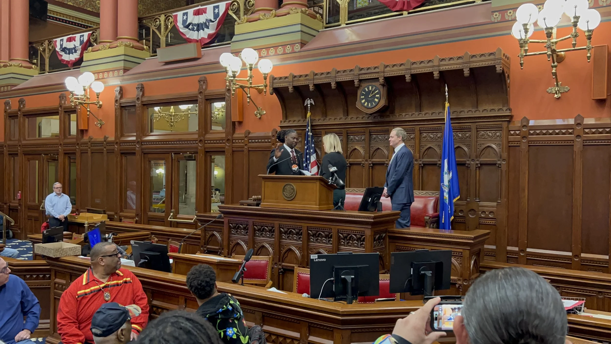 January 21, 2026 swearing in ceremony at the Connecticut State Capitol of Larry Pemberton Jr., the first Native American to be elected to the Connecticut General Assembly.